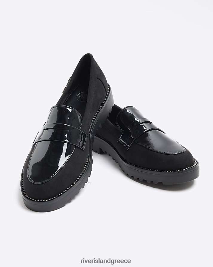 River Island είδη υπόδησης μαύρος γυναίκες loafers με λεπτομέρεια diamante B6N8X843