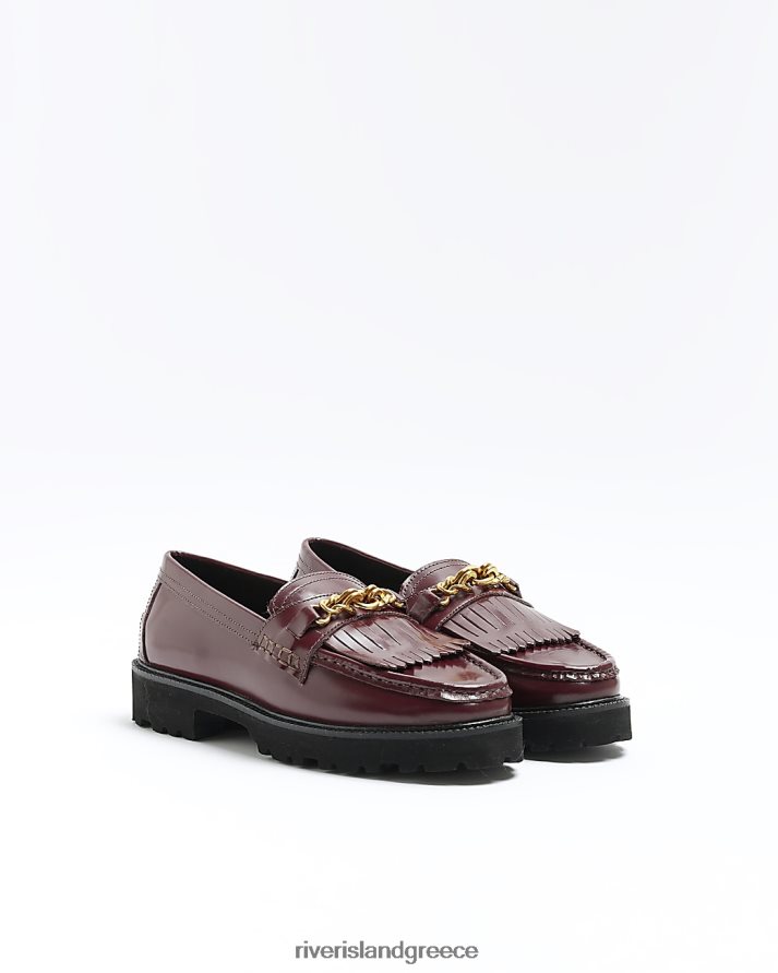 River Island είδη υπόδησης το κόκκινο γυναίκες δερμάτινα loafers με αλυσίδα B6N8X519