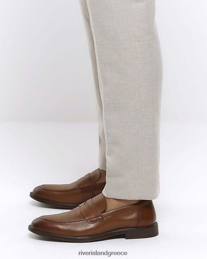River Island είδη υπόδησης καφέ άνδρες δερμάτινα loafers penny B6N8X2831