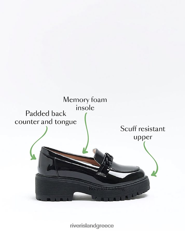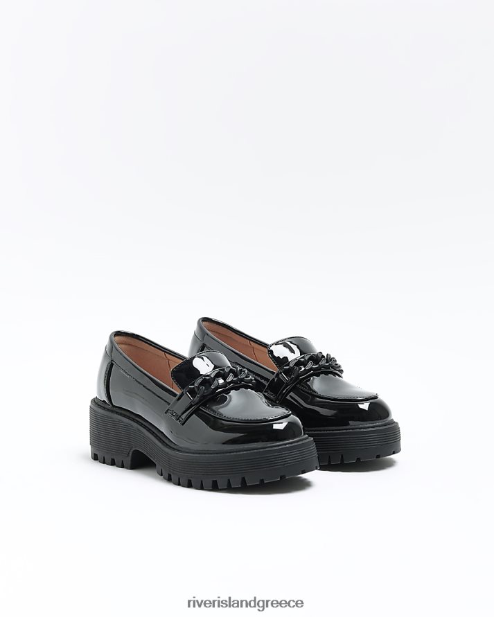 River Island είδη υπόδησης μαύρος κορίτσια g αλυσίδα χοντροκομμένα loafers B6N8X6279