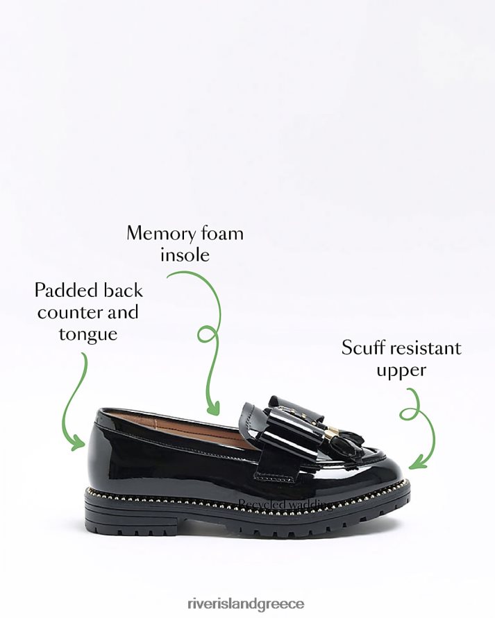River Island είδη υπόδησης μαύρος κορίτσια g φαρδιά φιόγκο χοντροκομμένα loafers B6N8X6285