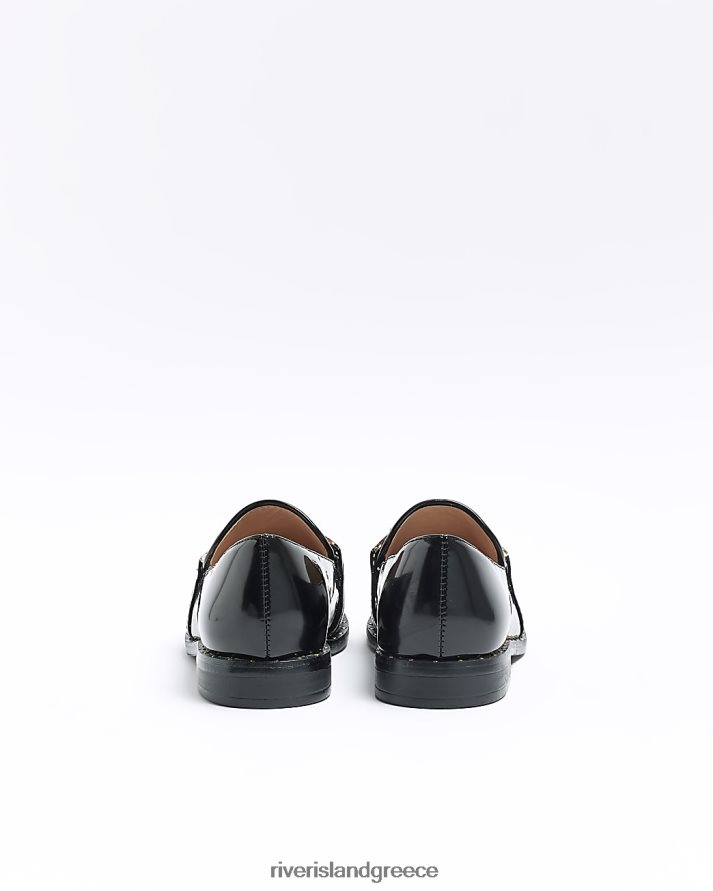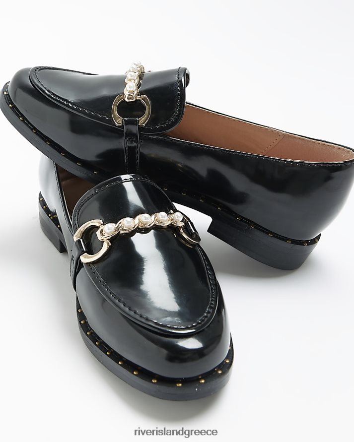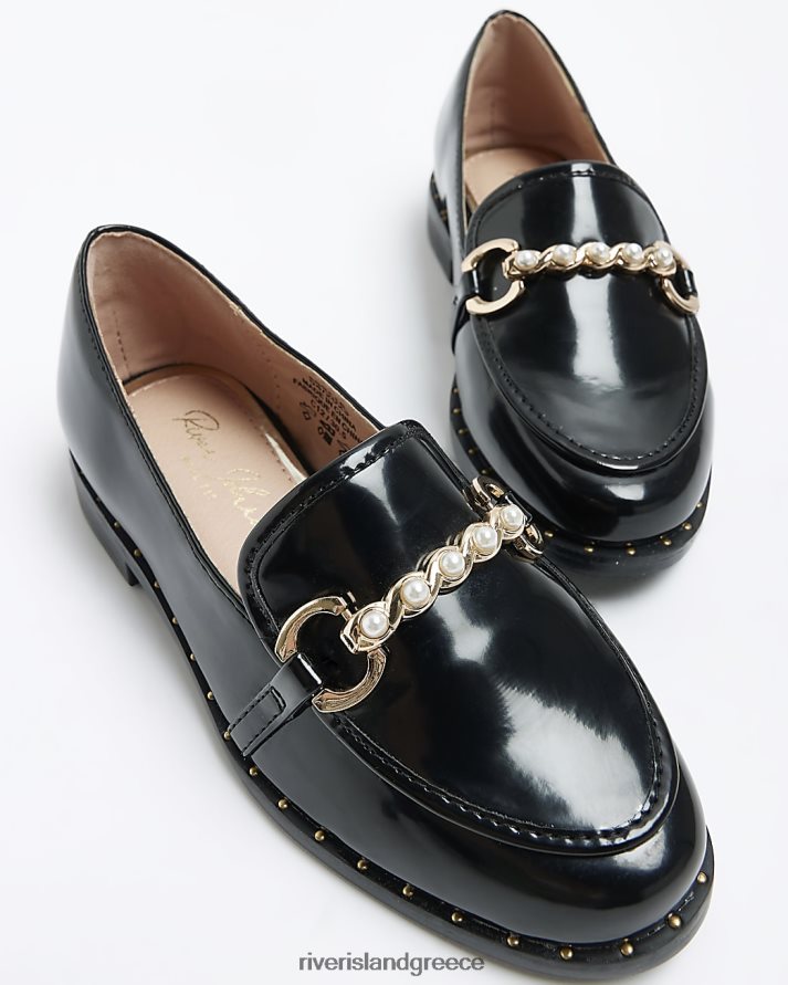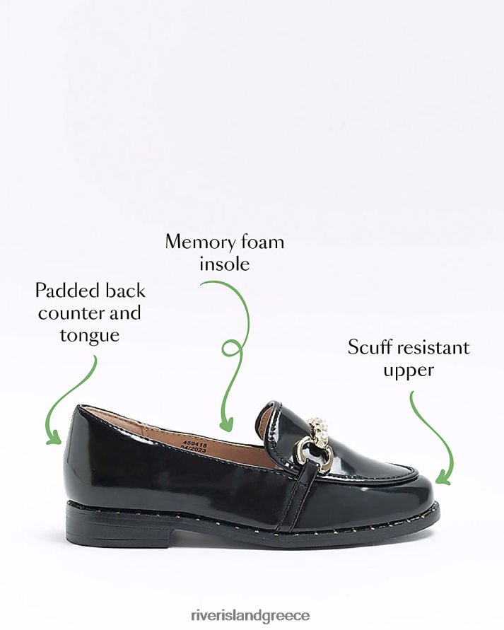 River Island είδη υπόδησης μαύρος κορίτσια g patent loafers με λεπτομέρεια με μαργαριταρένια αλυσίδα B6N8X6029