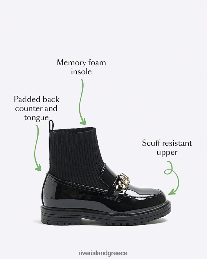 River Island είδη υπόδησης μαύρος κορίτσια g slip on chack loafers με αλυσίδα B6N8X6226