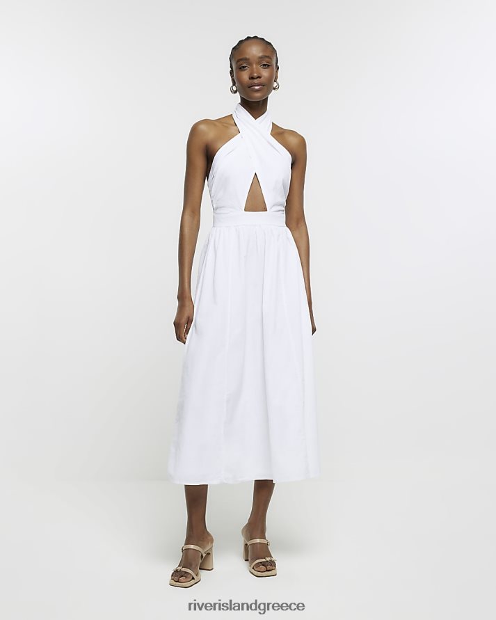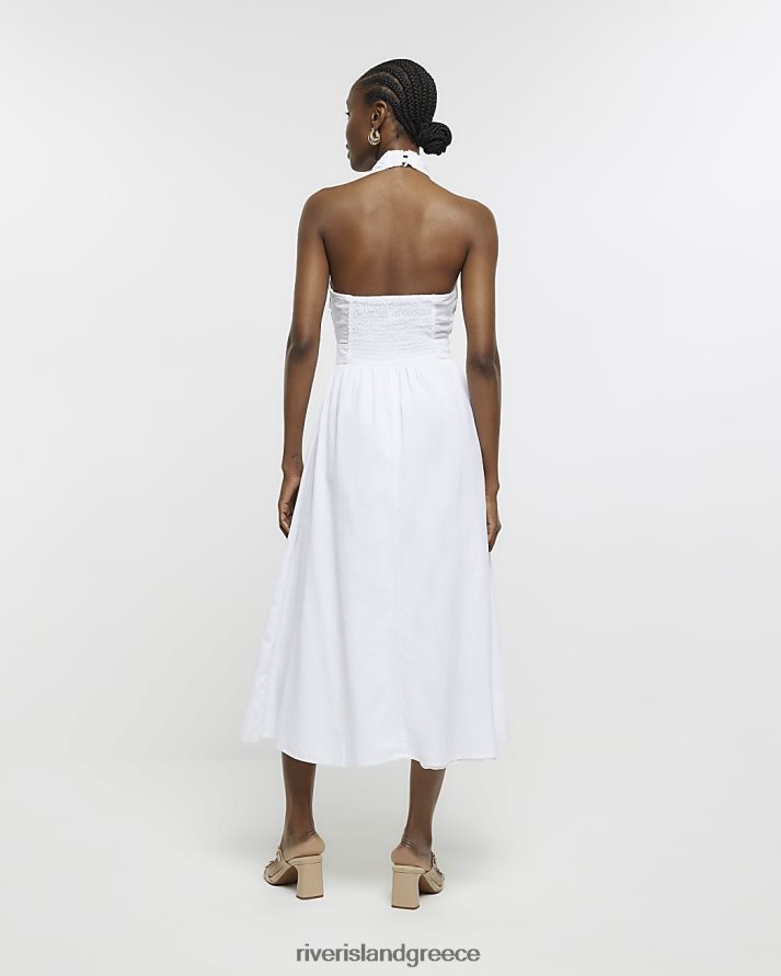 River Island ενδύματα άσπρο γυναίκες Μίντι φόρεμα με λινό λαιμόκοψη B6N8X2143