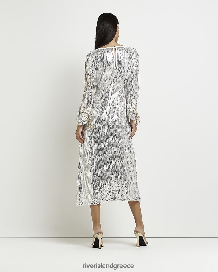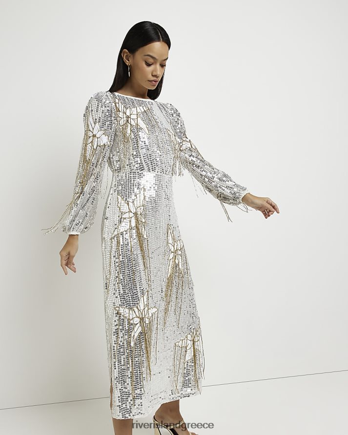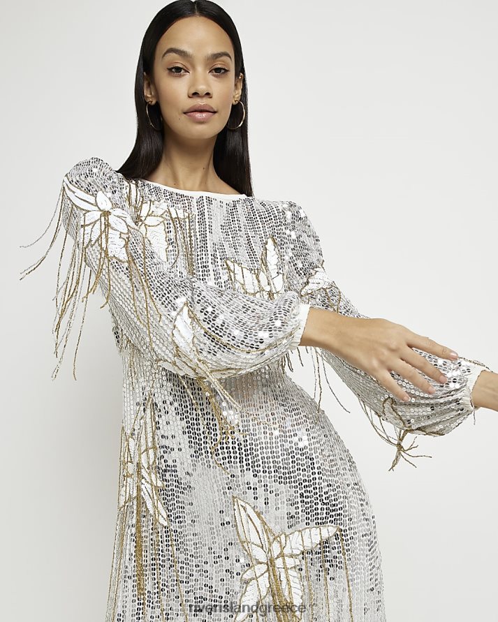 River Island ενδύματα ασήμι γυναίκες Μίντι φόρεμα με φλοράλ παγιέτες μακρυμάνικο B6N8X4861