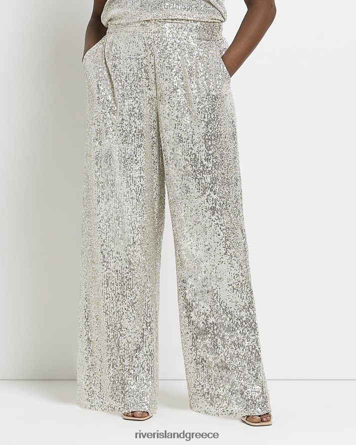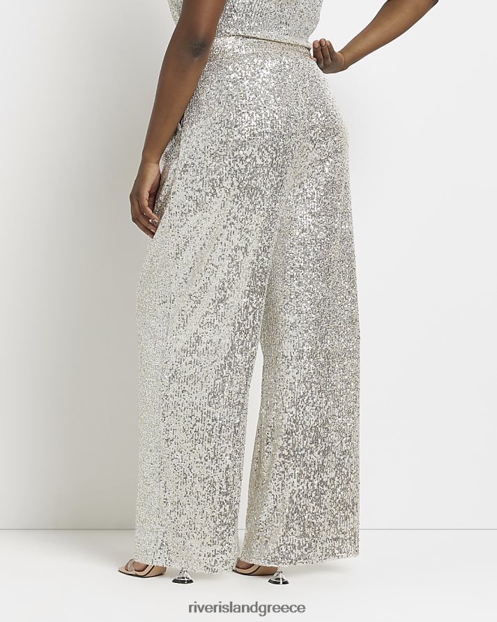 River Island ενδύματα ασήμι γυναίκες συν ένα φαρδύ παντελόνι με παγιέτες B6N8X5153