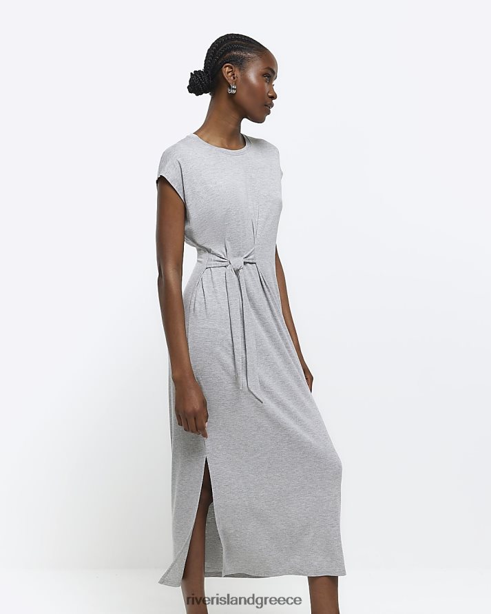River Island ενδύματα γκρί γυναίκες μίντι φόρεμα μπλουζάκι γραβάτα B6N8X1619