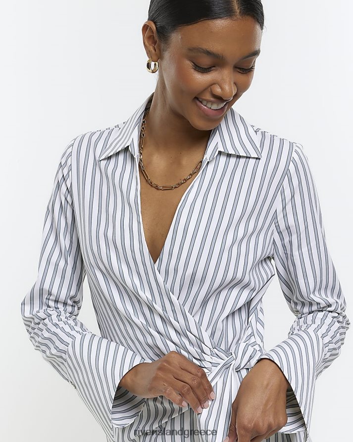 River Island ενδύματα γκρί γυναίκες wrap μίνι πουκάμισο φόρεμα B6N8X4500