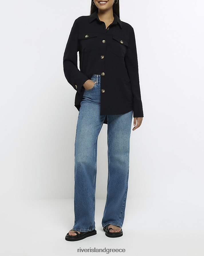 River Island ενδύματα μαύρος γυναίκες ανάγλυφο μακρυμάνικο πουκάμισο B6N8X420