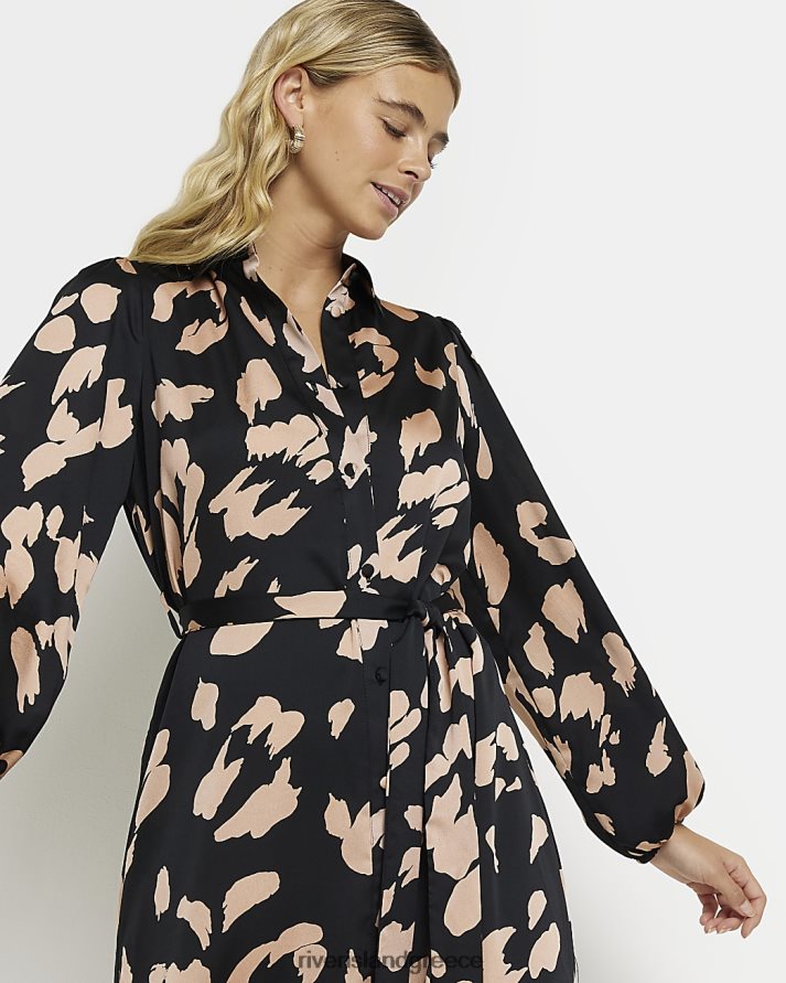 River Island ενδύματα μαύρος γυναίκες μίντι πουκάμισο φόρεμα από σατέν animal print B6N8X1960