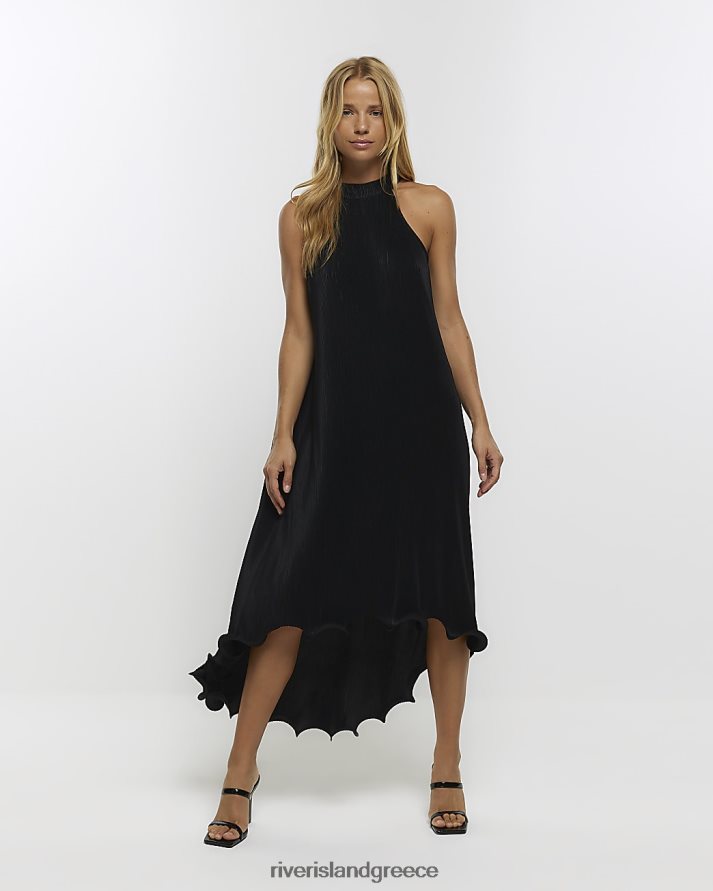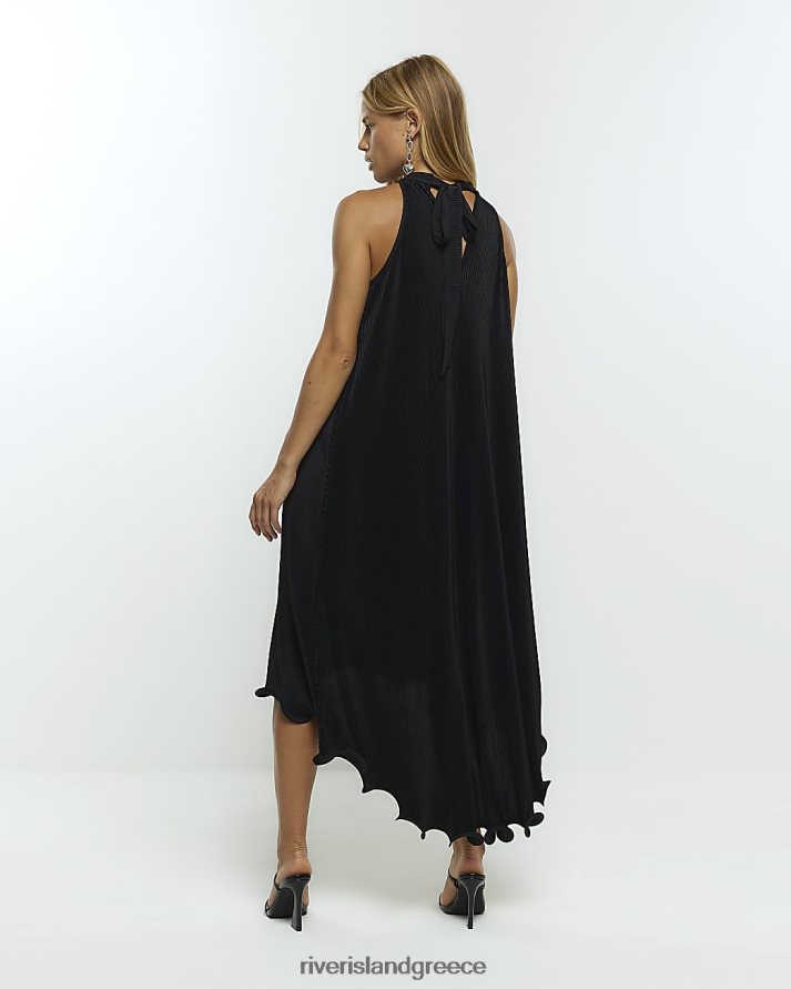 River Island ενδύματα μαύρος γυναίκες μίντι φόρεμα plisse frill slip B6N8X1167