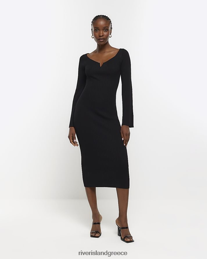 River Island ενδύματα μαύρος γυναίκες μακρυμάνικο bodycon μίντι φόρεμα B6N8X4320
