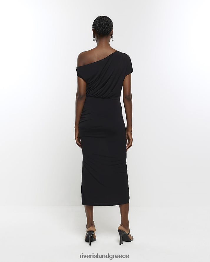 River Island ενδύματα μαύρος γυναίκες ντραπέ μίντι φόρεμα B6N8X1091