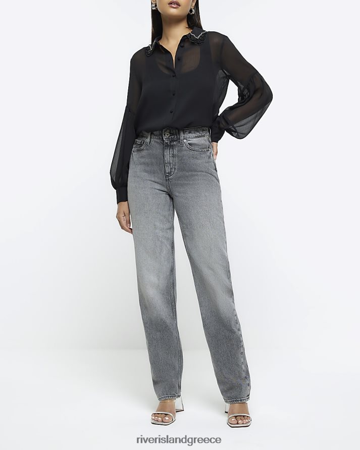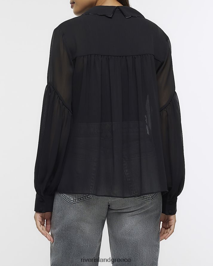 River Island ενδύματα μαύρος γυναίκες πουκάμισο διακοσμημένο με σιφόν B6N8X1049