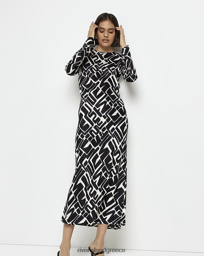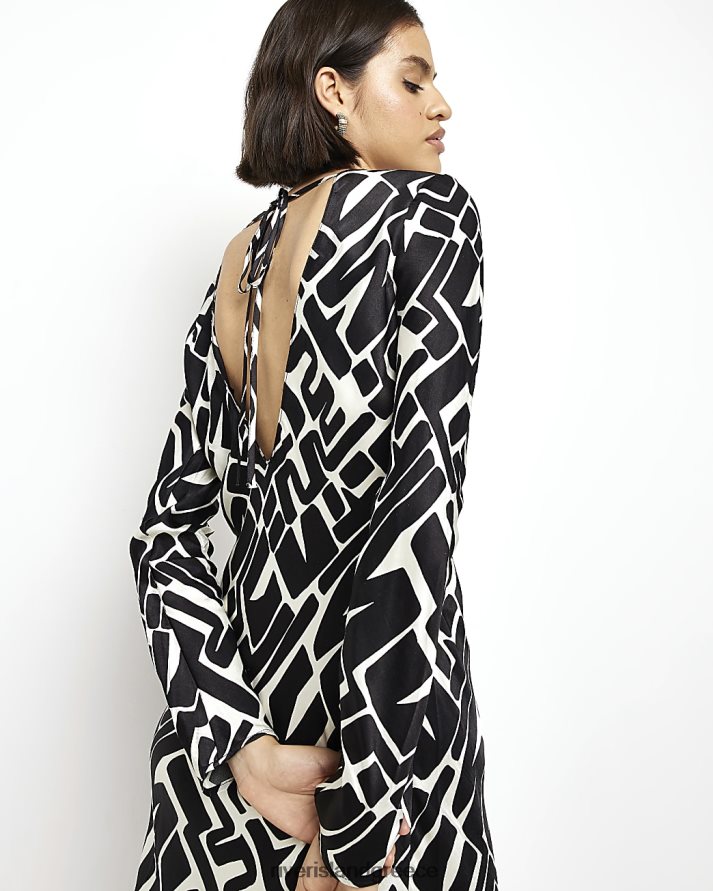 River Island ενδύματα μαύρος γυναίκες σατέν αφηρημένο slip μίντι φόρεμα B6N8X2012