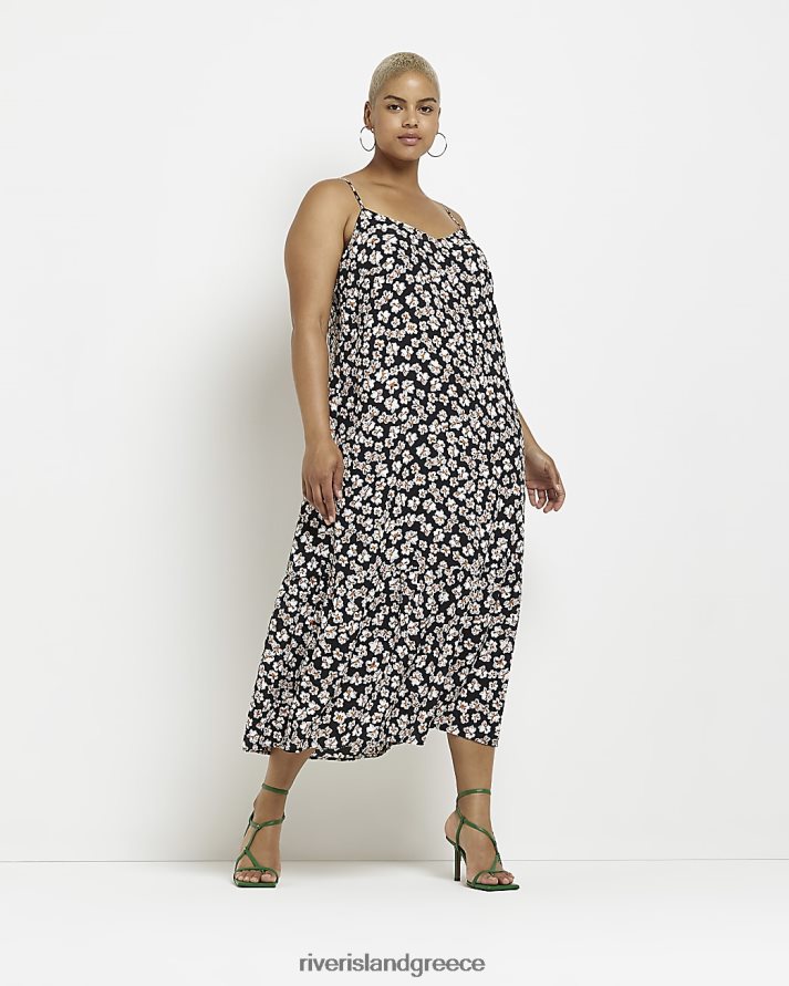 River Island ενδύματα μαύρος γυναίκες συν φλοράλ μίντι φόρεμα B6N8X2240