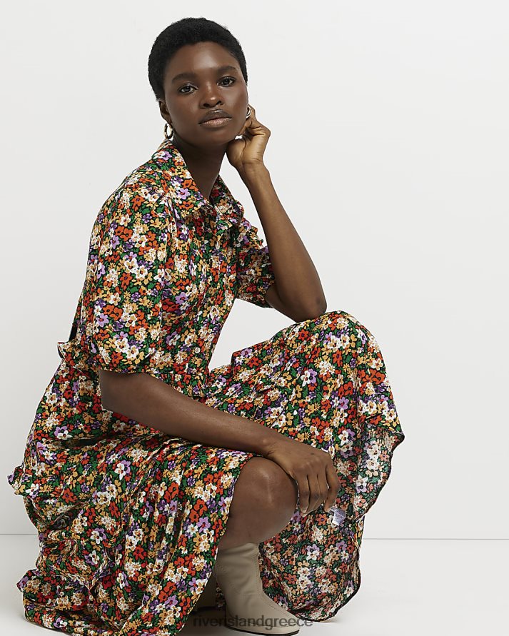 River Island ενδύματα μαύρος γυναίκες φλοράλ κοντομάνικο μίντι πουκάμισο φόρεμα B6N8X4912