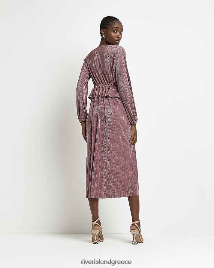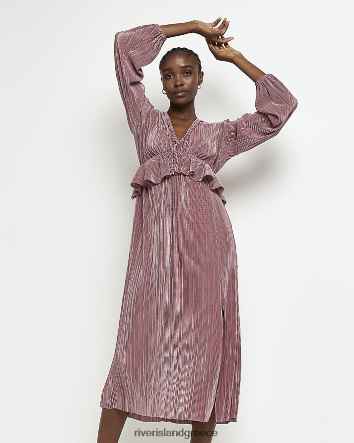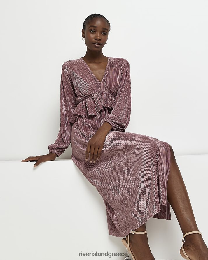 River Island ενδύματα μπεζ γυναίκες μακρυμάνικο μίντι φόρεμα plisse B6N8X543