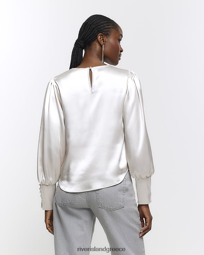 River Island ενδύματα μπεζ γυναίκες μακρυμάνικο μπλουζάκι με σατέν μανσέτα B6N8X443