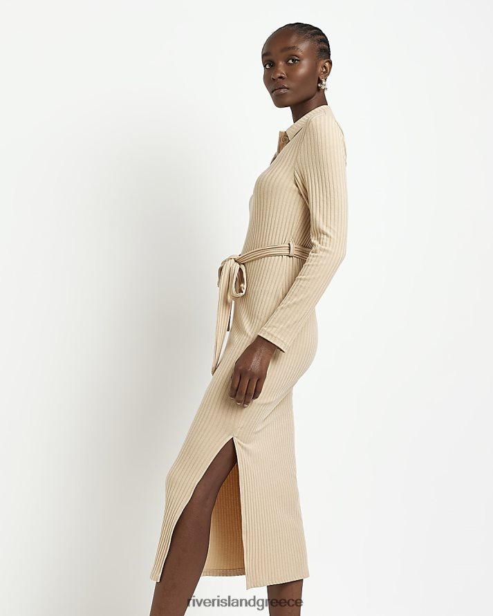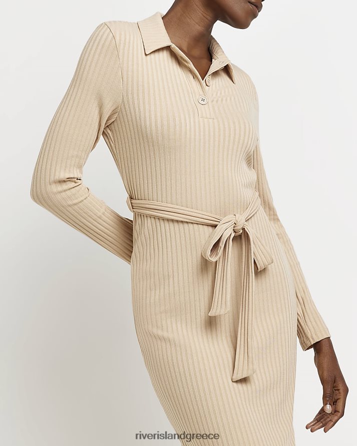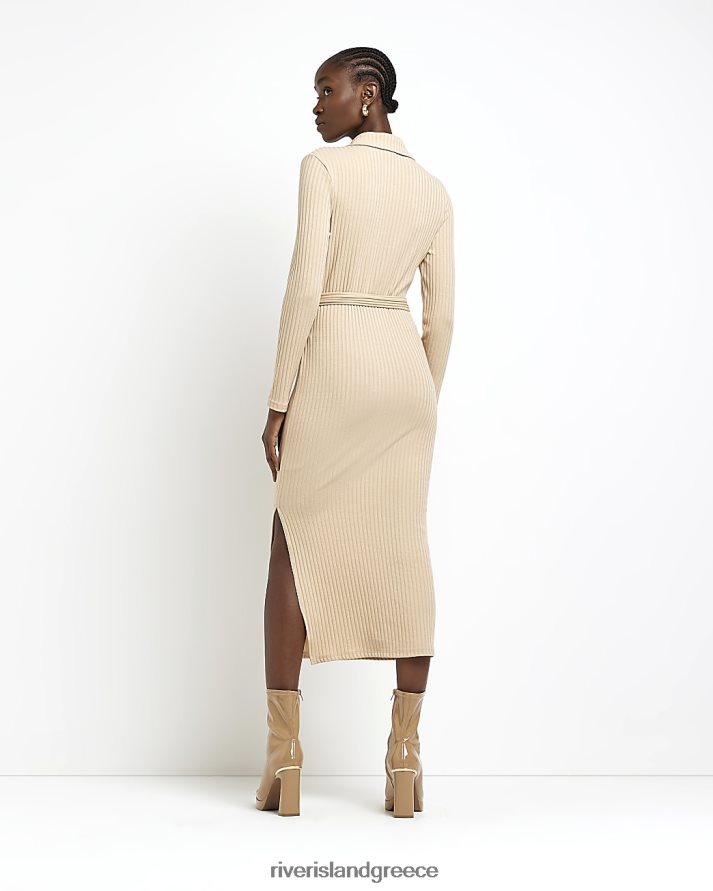 River Island ενδύματα μπεζ γυναίκες μακρυμάνικο bodycon μίντι φόρεμα B6N8X469