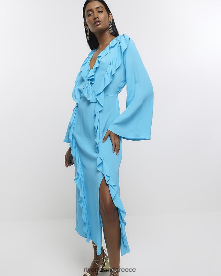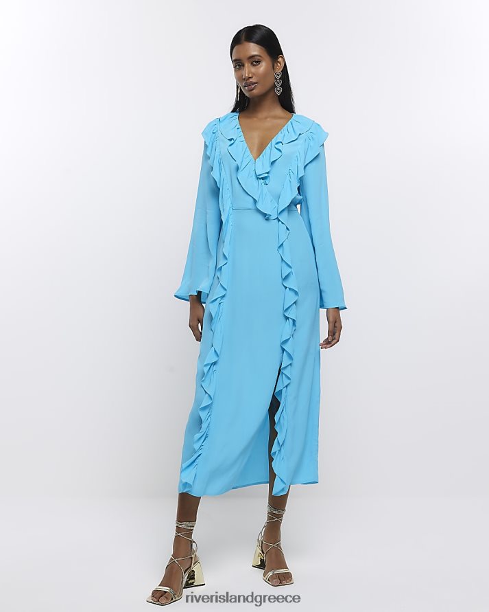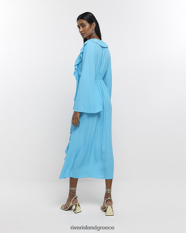 River Island ενδύματα μπλε γυναίκες μίντι φόρεμα swing με frill wrap B6N8X1539