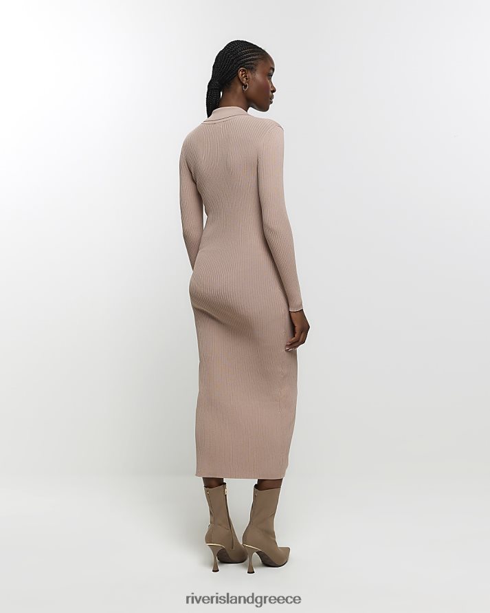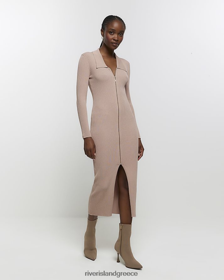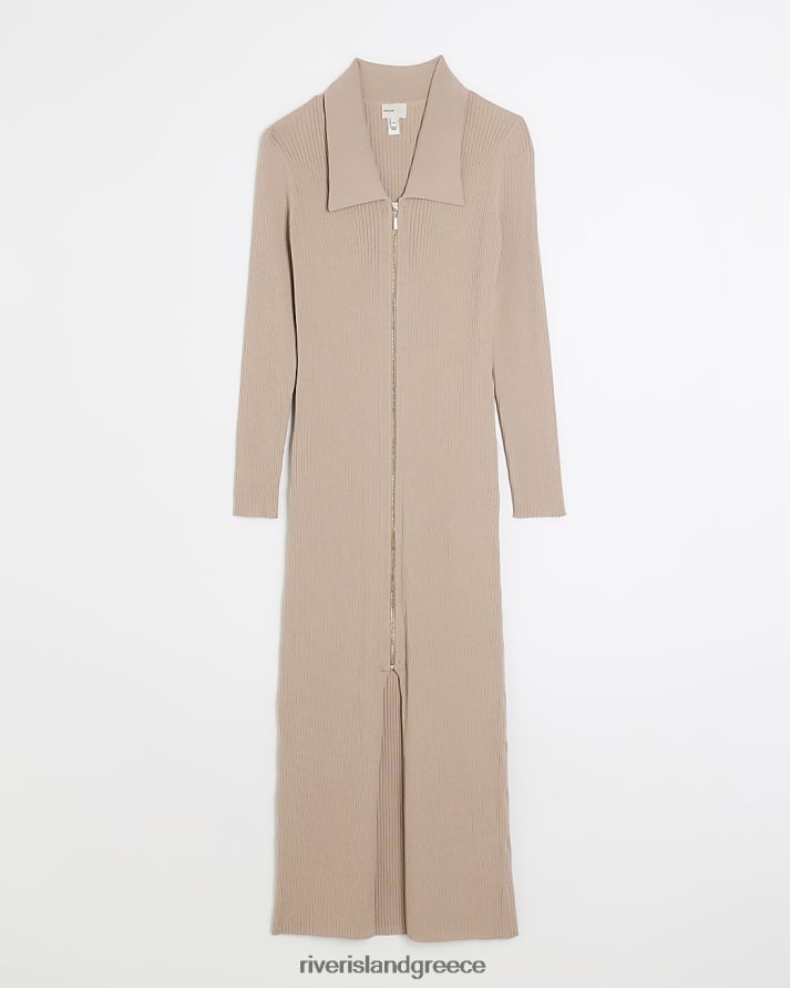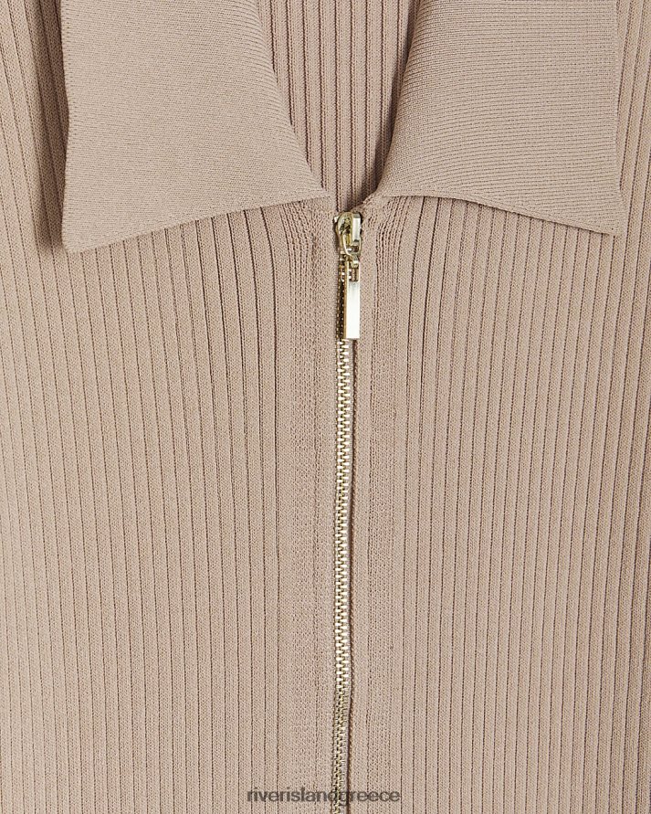 River Island ενδύματα πέτρα γυναίκες Πλεκτό μίντι φόρεμα με φερμουάρ B6N8X86