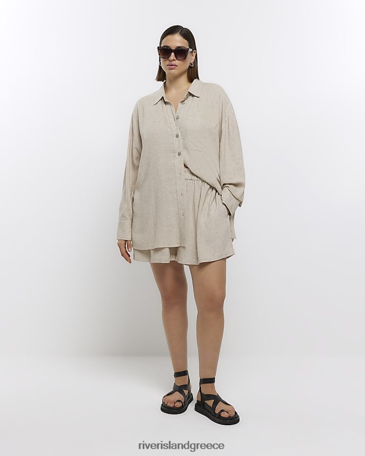 River Island ενδύματα πέτρα γυναίκες συν υπερμεγέθη πουκάμισο με λινό B6N8X2215