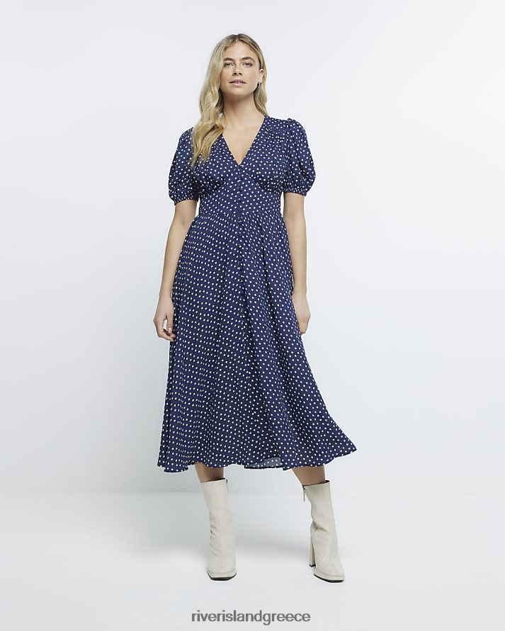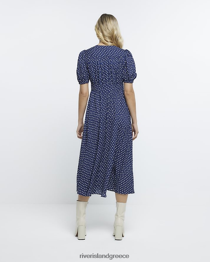 River Island ενδύματα ΠΟΛΕΜΙΚΟ ΝΑΥΤΙΚΟ γυναίκες μίντι φόρεμα τσαγιού με κουμπί B6N8X1942