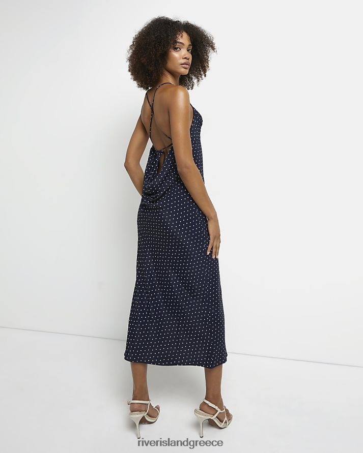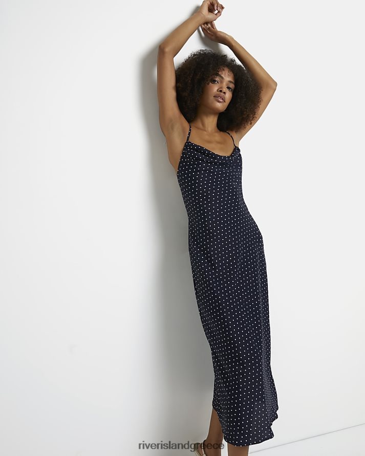 River Island ενδύματα ΠΟΛΕΜΙΚΟ ΝΑΥΤΙΚΟ γυναίκες πουά σατέν μίντι φόρεμα B6N8X5055
