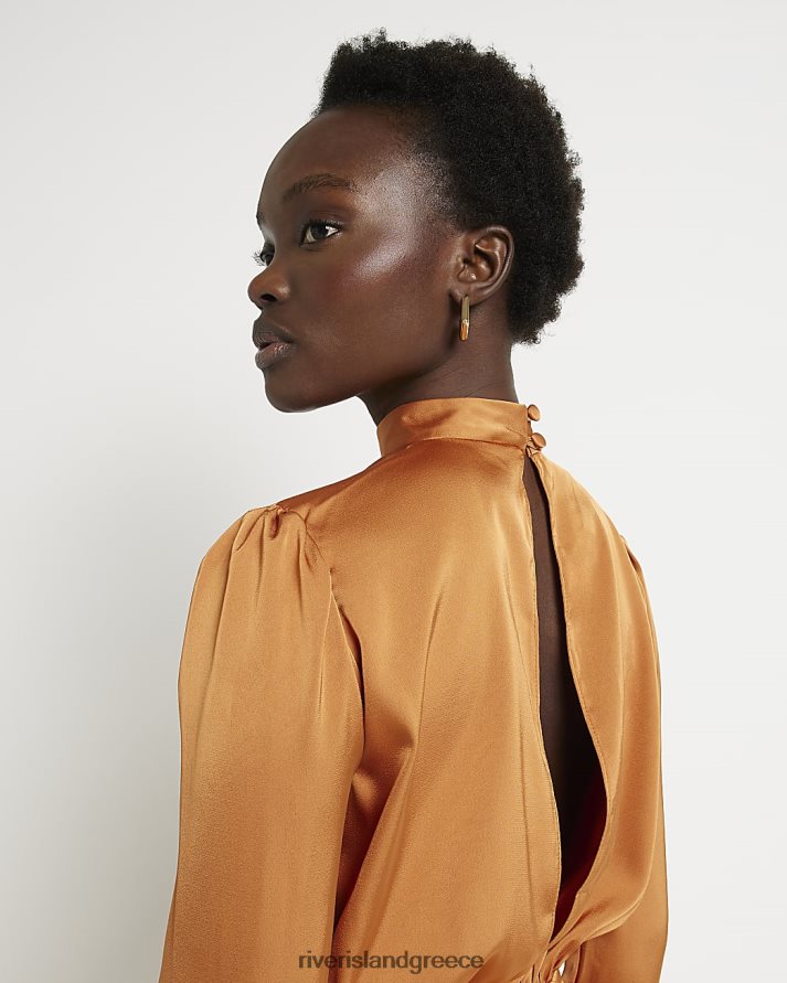 River Island ενδύματα πορτοκάλι γυναίκες Σατέν φόρεμα με λαιμόκοψη B6N8X1934