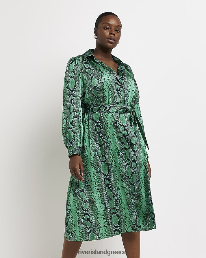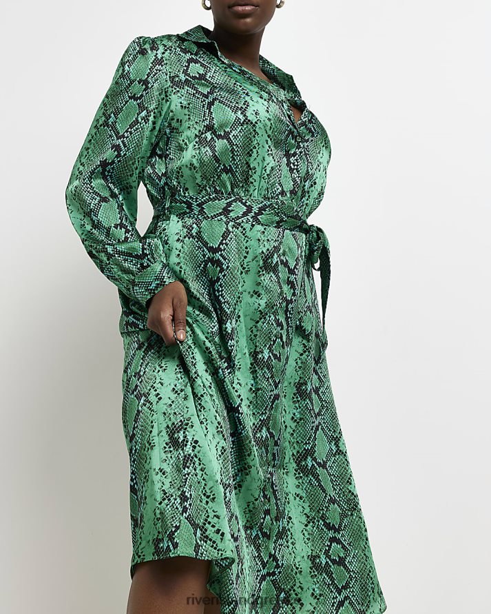 River Island ενδύματα πράσινος γυναίκες μίντι πουκάμισο φόρεμα με animal print B6N8X2061