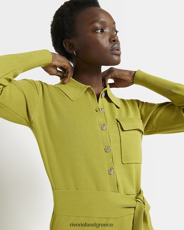 River Island ενδύματα πράσινος γυναίκες μακρυμάνικο μίντι πουκάμισο φόρεμα B6N8X2010