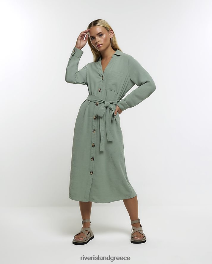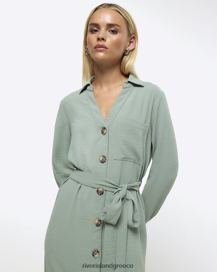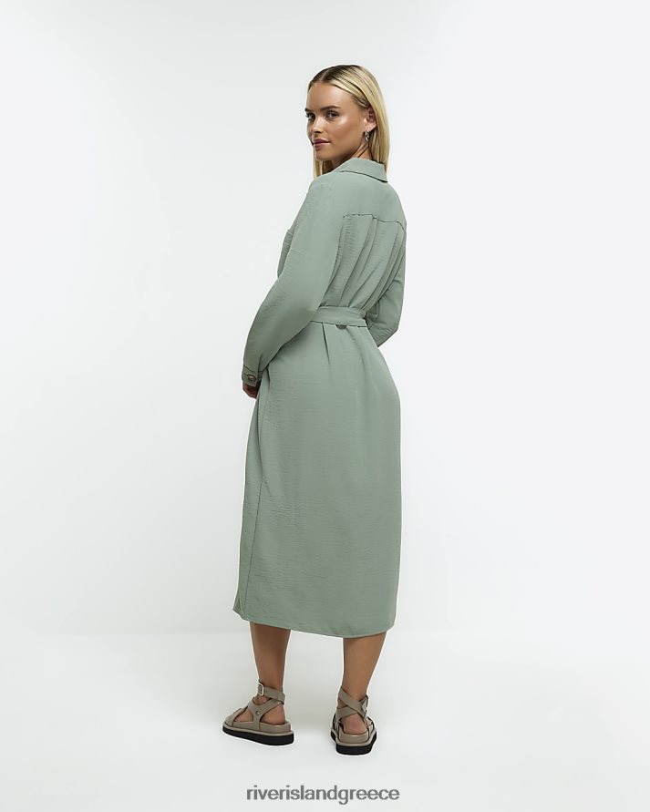 River Island ενδύματα πράσινος γυναίκες petite ζωσμένο μίντι πουκάμισο φόρεμα B6N8X5250