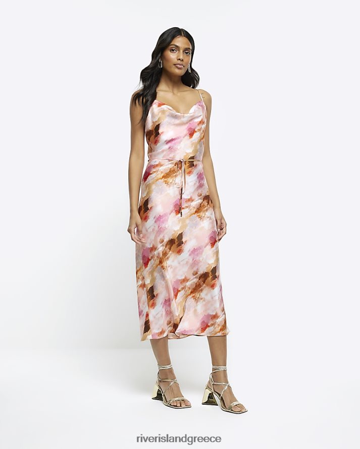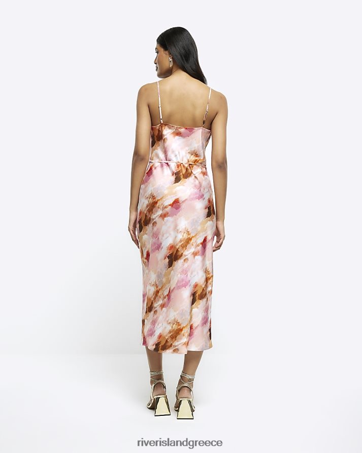 River Island ενδύματα ροζ γυναίκες αφηρημένο midi φόρεμα με λαιμόκοψη B6N8X789