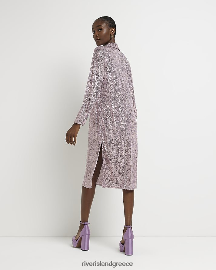 River Island ενδύματα ροζ γυναίκες μακρυμάνικο μίντι πουκάμισο με παγιέτες B6N8X190