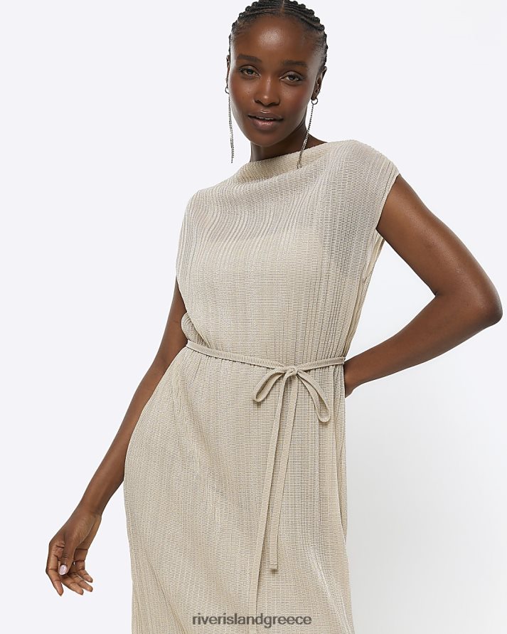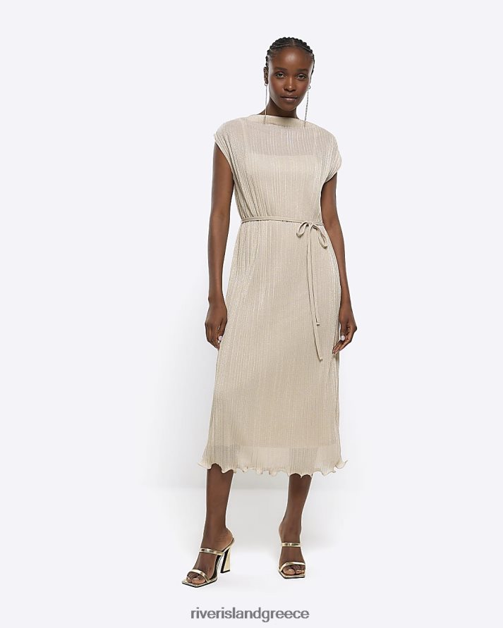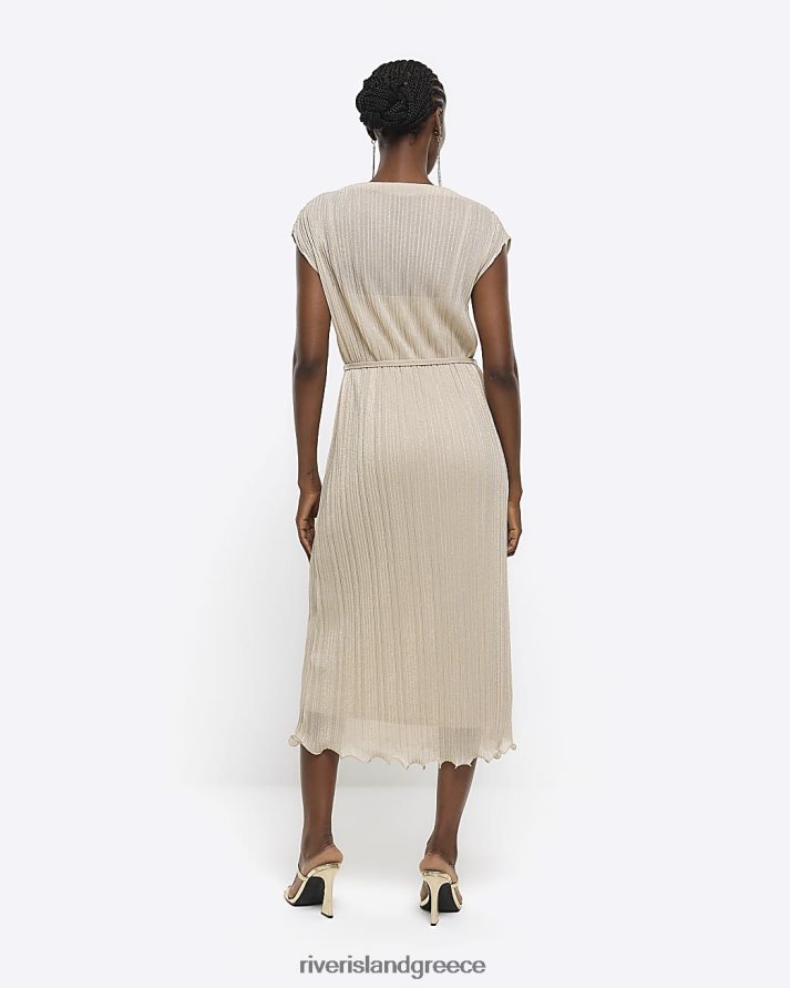 River Island ενδύματα χρυσός γυναίκες μίντι φόρεμα μεταλλικό plisse B6N8X4384