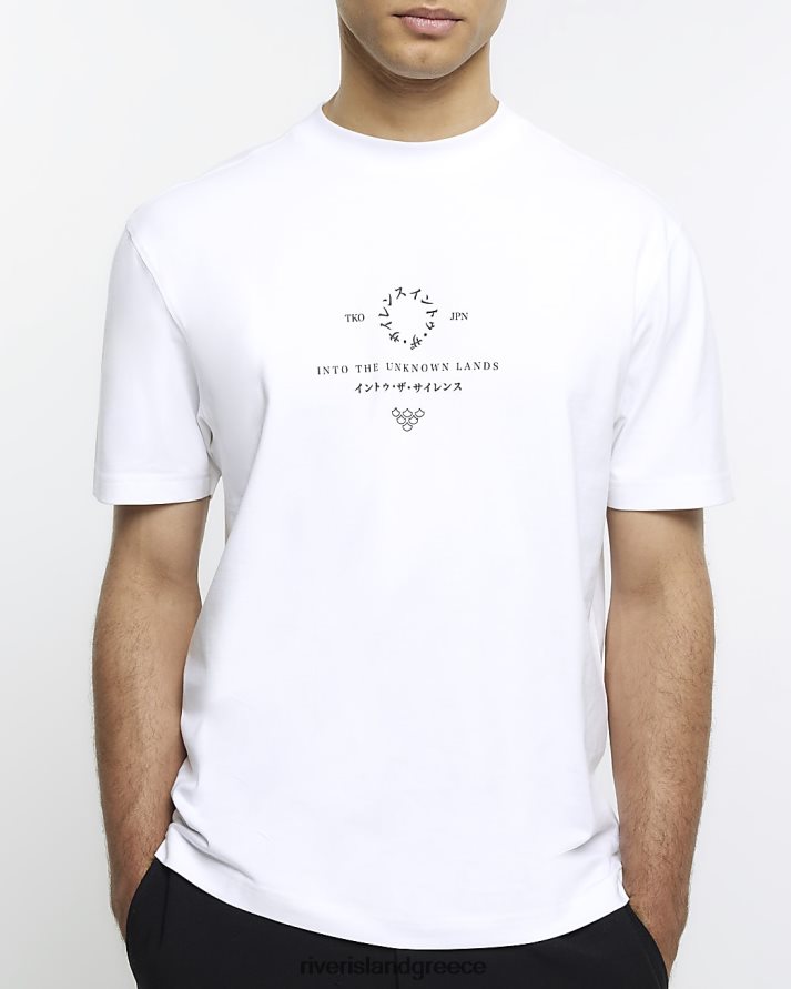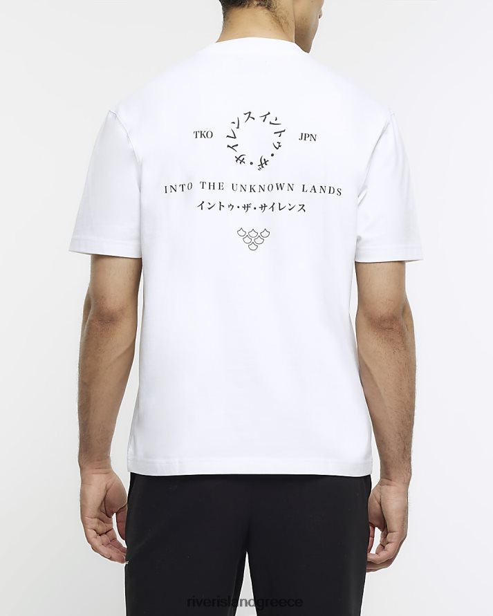 River Island ενδύματα άσπρο άνδρες κανονική εφαρμογή γιαπωνέζικα γραφικά μπλουζάκι B6N8X5683
