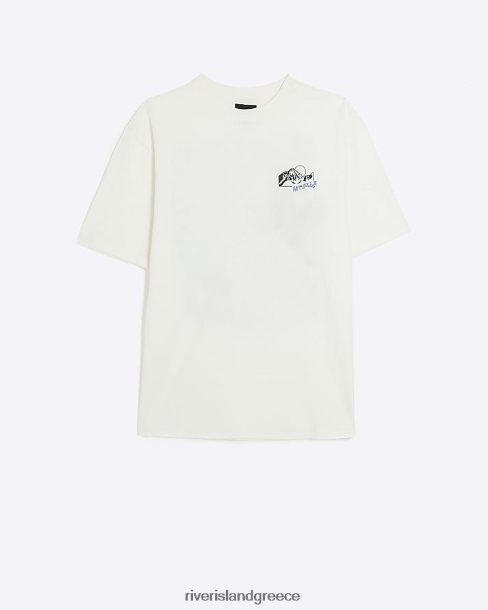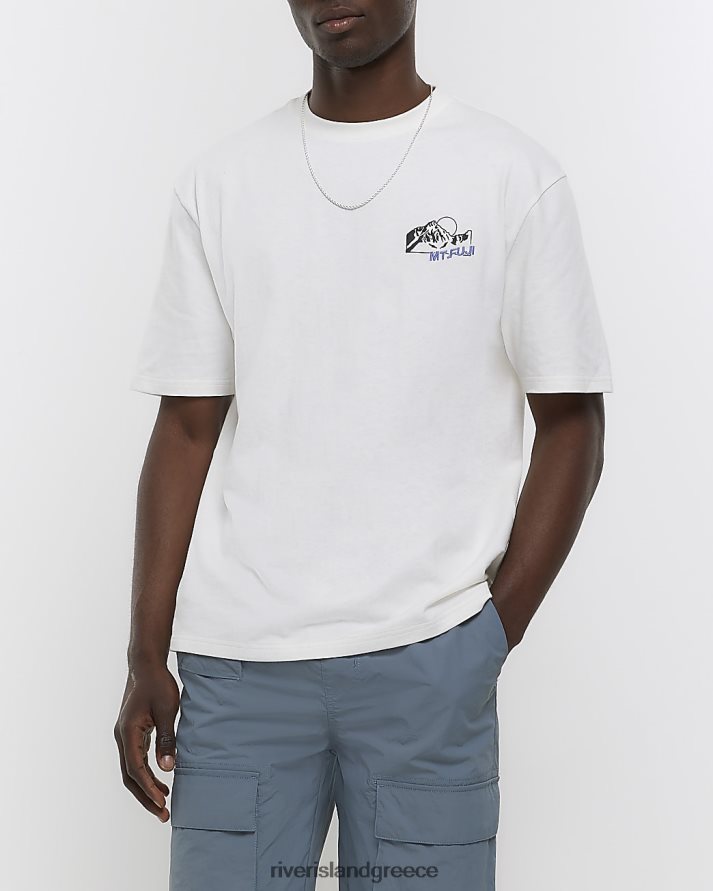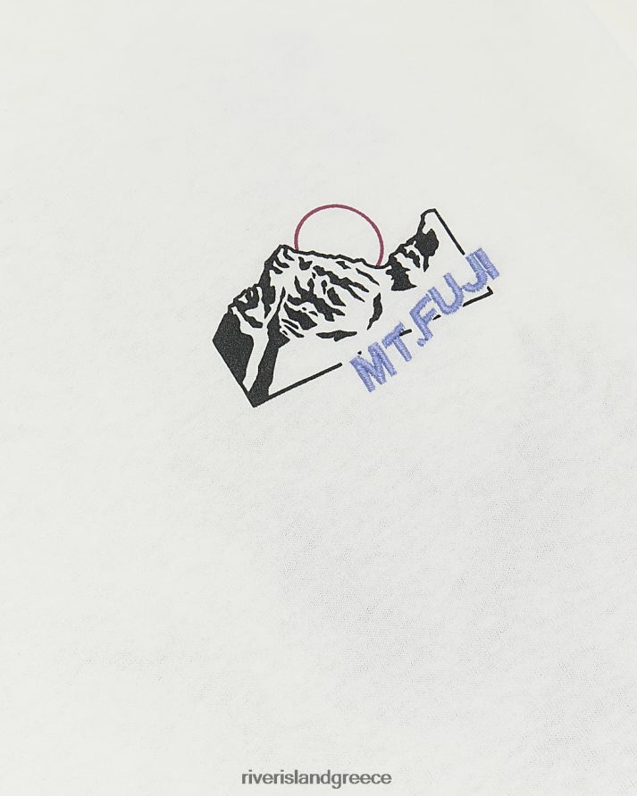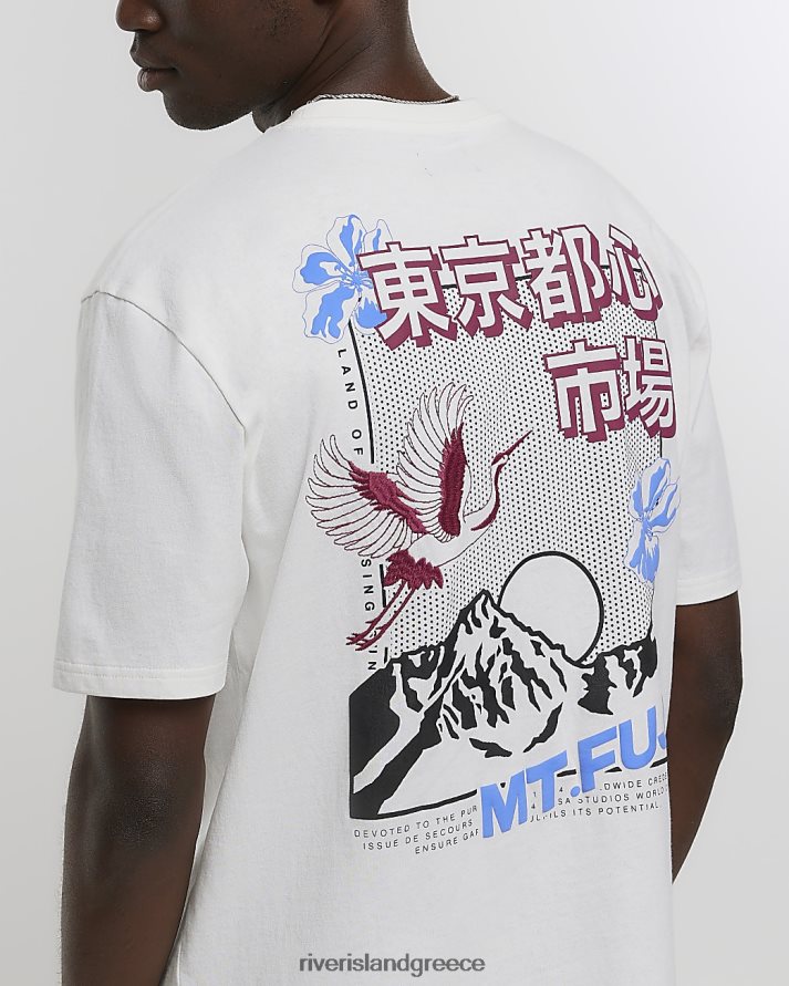 River Island ενδύματα άσπρο άνδρες κανονική εφαρμογή γιαπωνέζικα γραφικά μπλουζάκι B6N8X5756