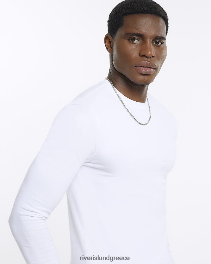 River Island ενδύματα άσπρο άνδρες μακρυμάνικο μπλουζάκι για μυϊκή εφαρμογή B6N8X2495
