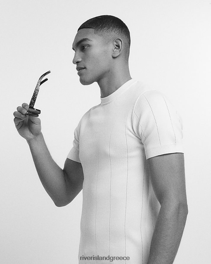 River Island ενδύματα άσπρο άνδρες μυϊκή πλεκτή μπλούζα B6N8X2845