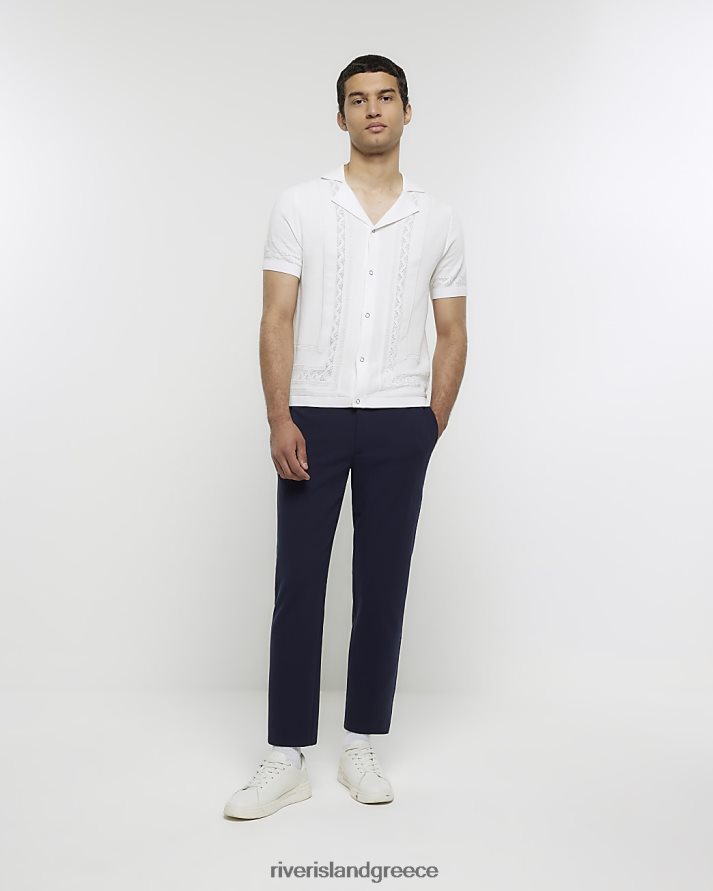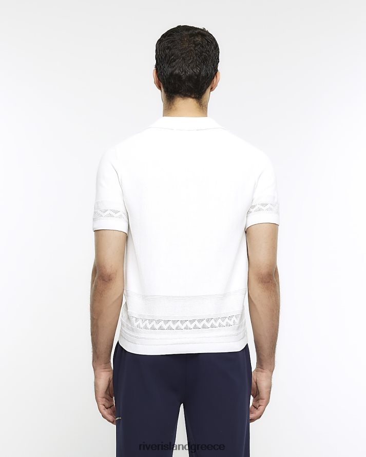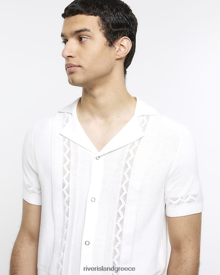 River Island ενδύματα άσπρο άνδρες Πλεκτό πουκάμισο Revere με λεπτή στάμπα B6N8X5654