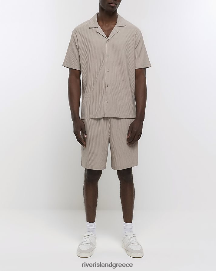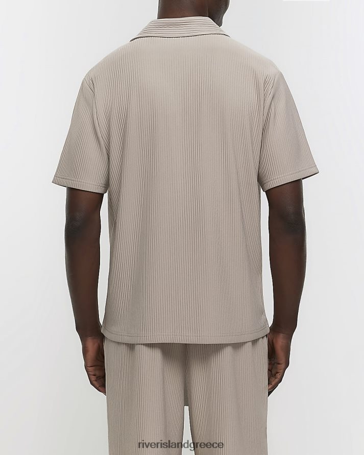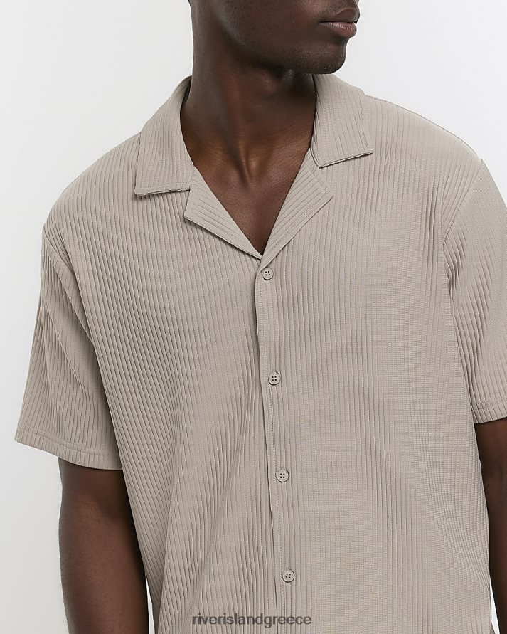 River Island ενδύματα ανοιχτό γκρι άνδρες κανονική εφαρμογή revere plisse πουκάμισο B6N8X2434