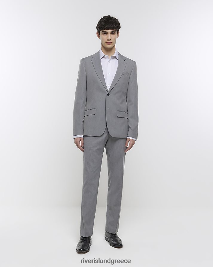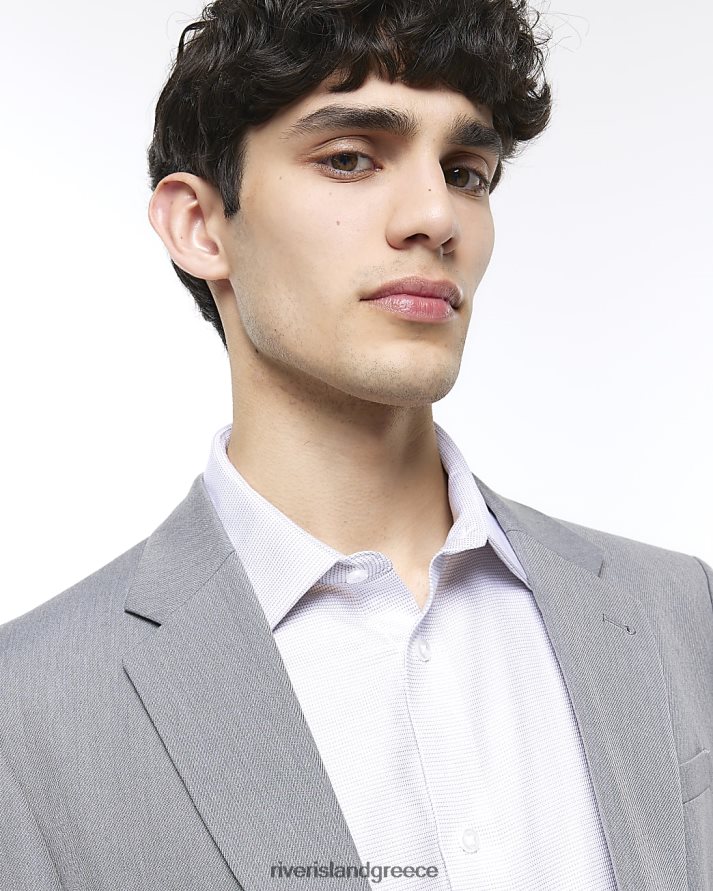 River Island ενδύματα ανοιχτό γκρι άνδρες σιδερένιο πουκάμισο σε λεπτή εφαρμογή B6N8X3056
