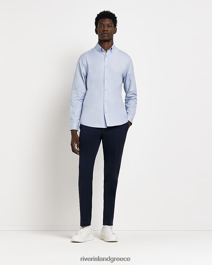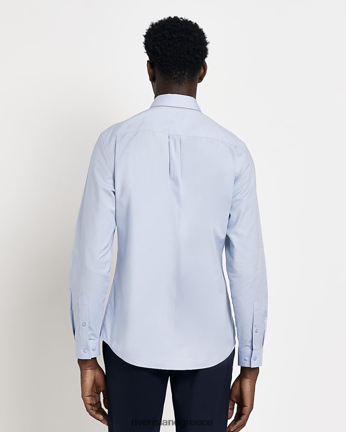 River Island ενδύματα γαλάζιο άνδρες slim fit stretch oxford πουκάμισο B6N8X3113