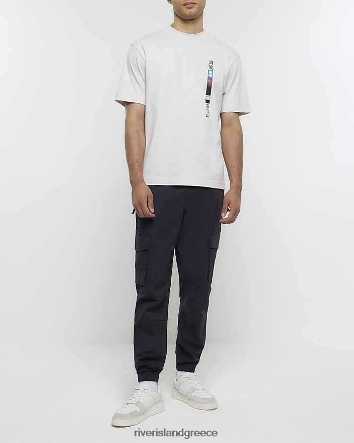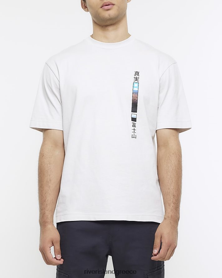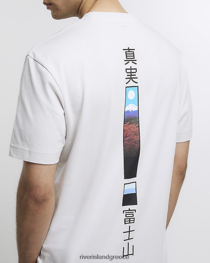 River Island ενδύματα γκρί άνδρες κανονική εφαρμογή γραφικό μπλουζάκι ράχης B6N8X5598
