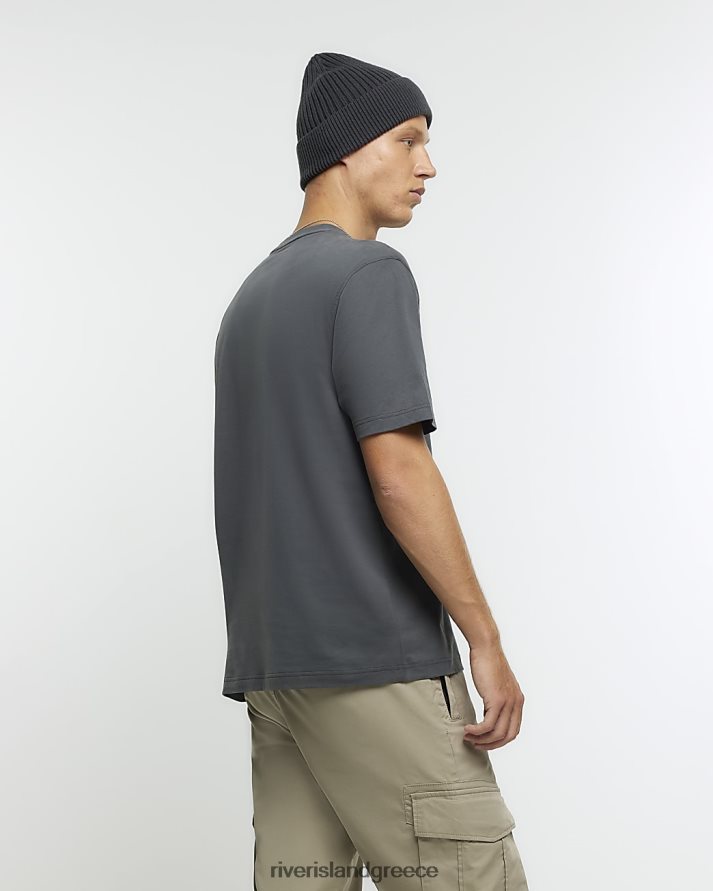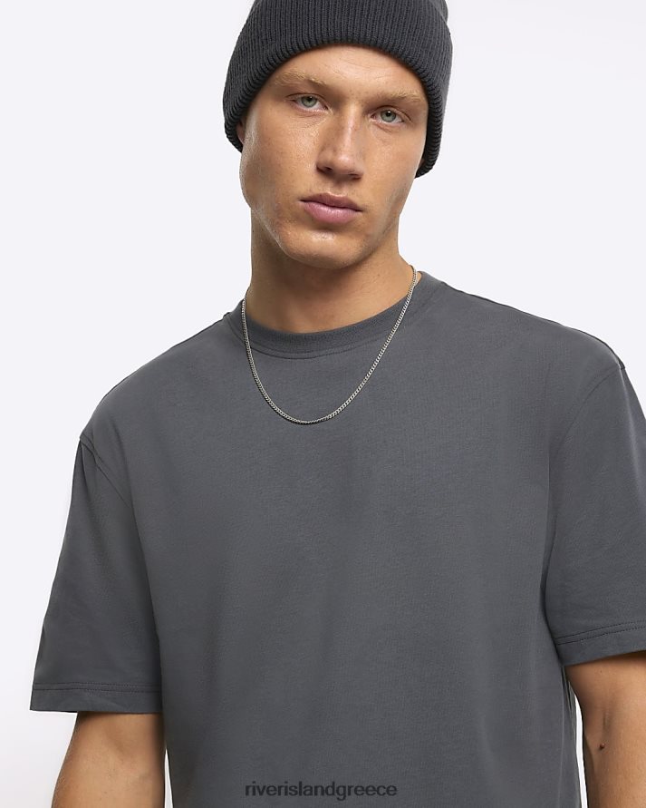 River Island ενδύματα γκρί άνδρες μπλουζάκι με κανονική εφαρμογή B6N8X2519