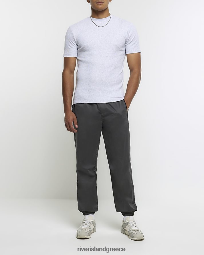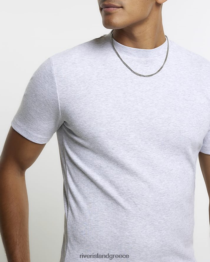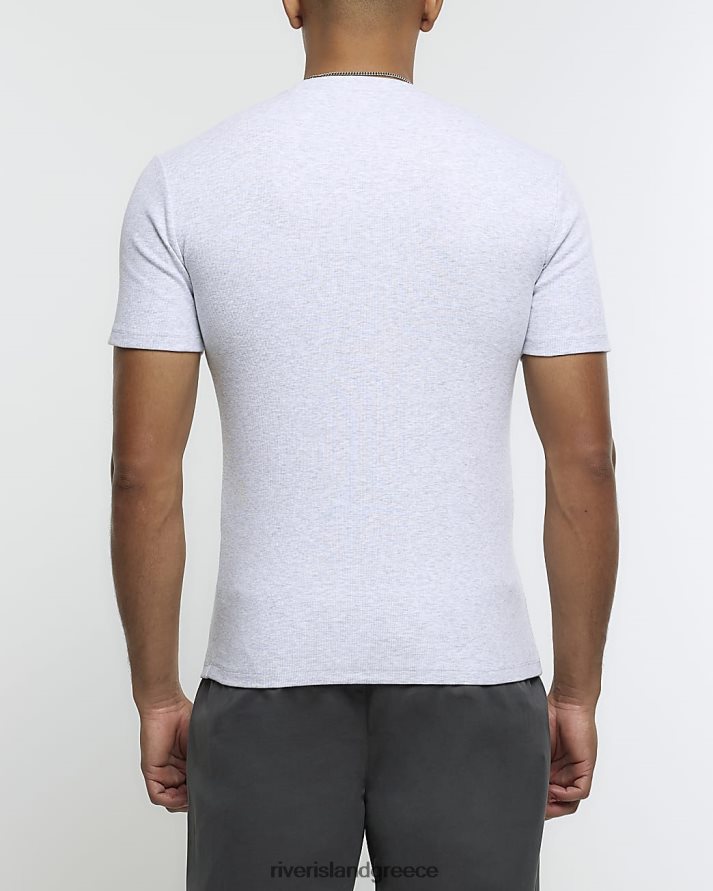 River Island ενδύματα γκρί άνδρες rib μπλουζάκι που ταιριάζει στους μυς B6N8X5470