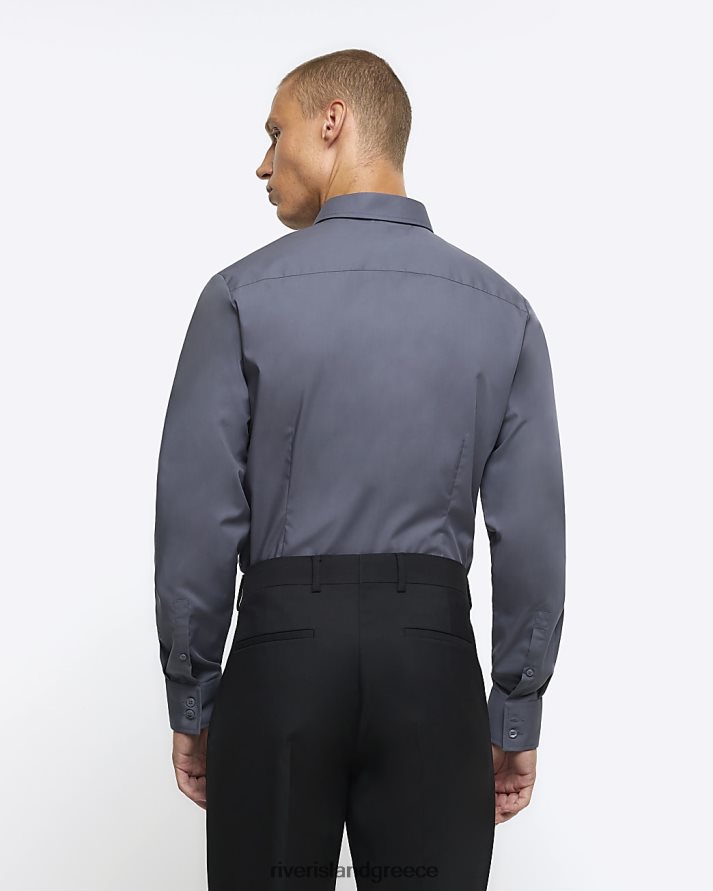 River Island ενδύματα γκρί άνδρες slim fit smart πουκάμισο B6N8X2706