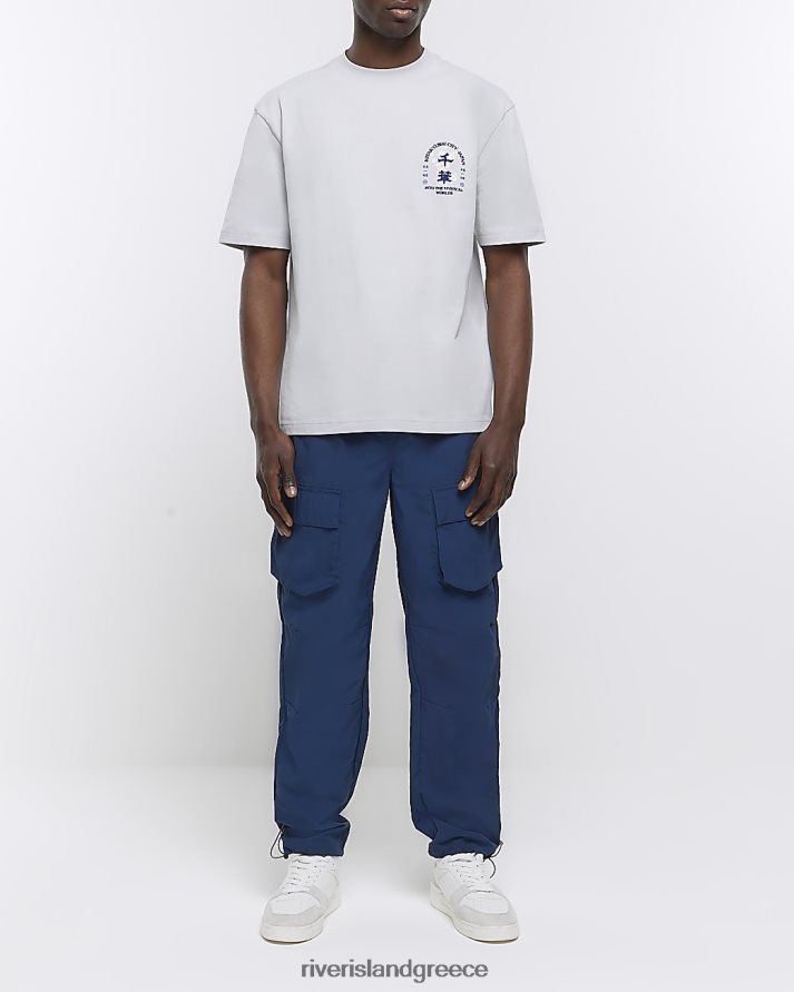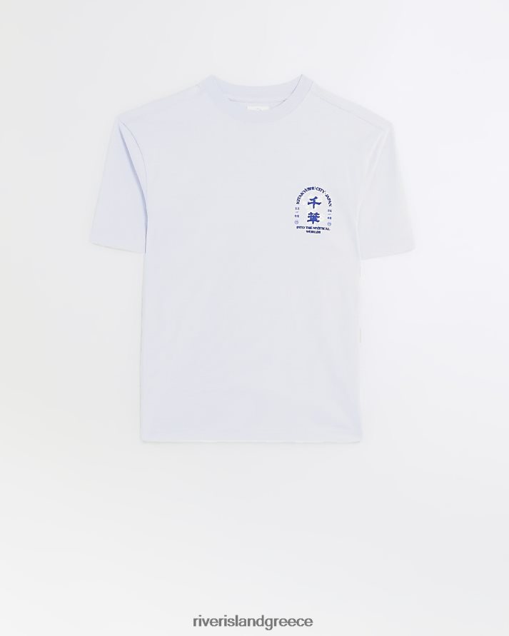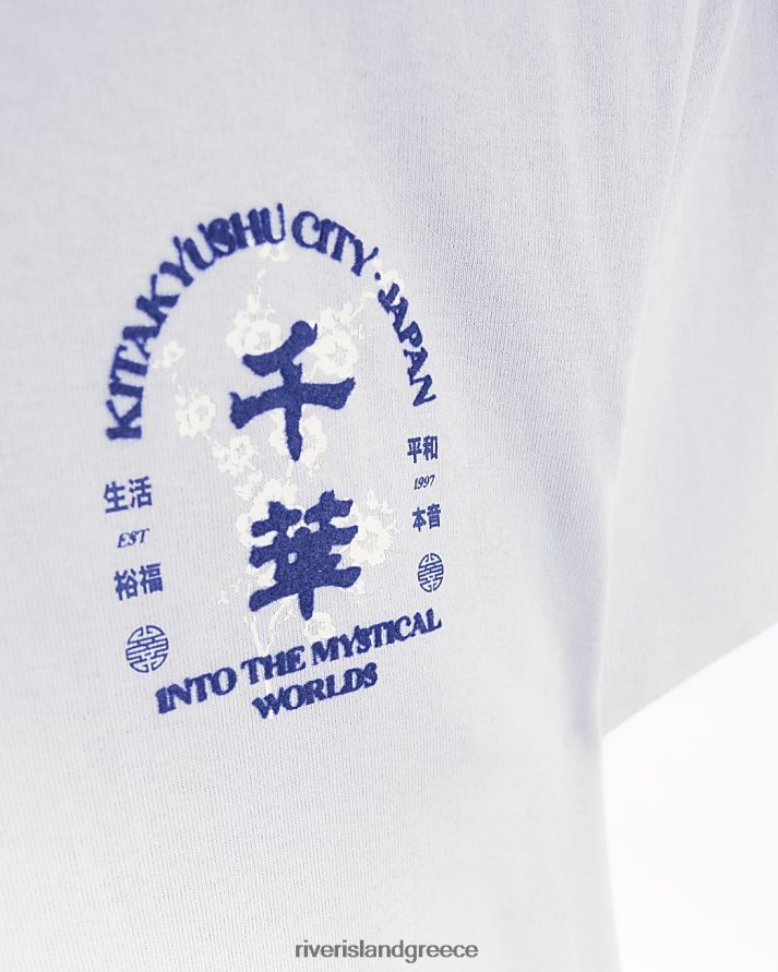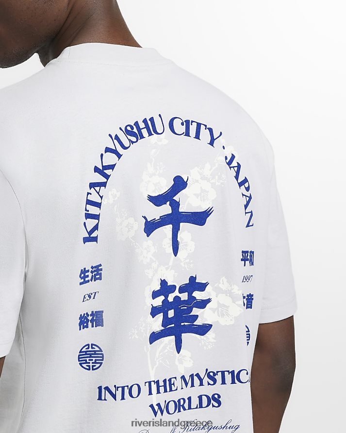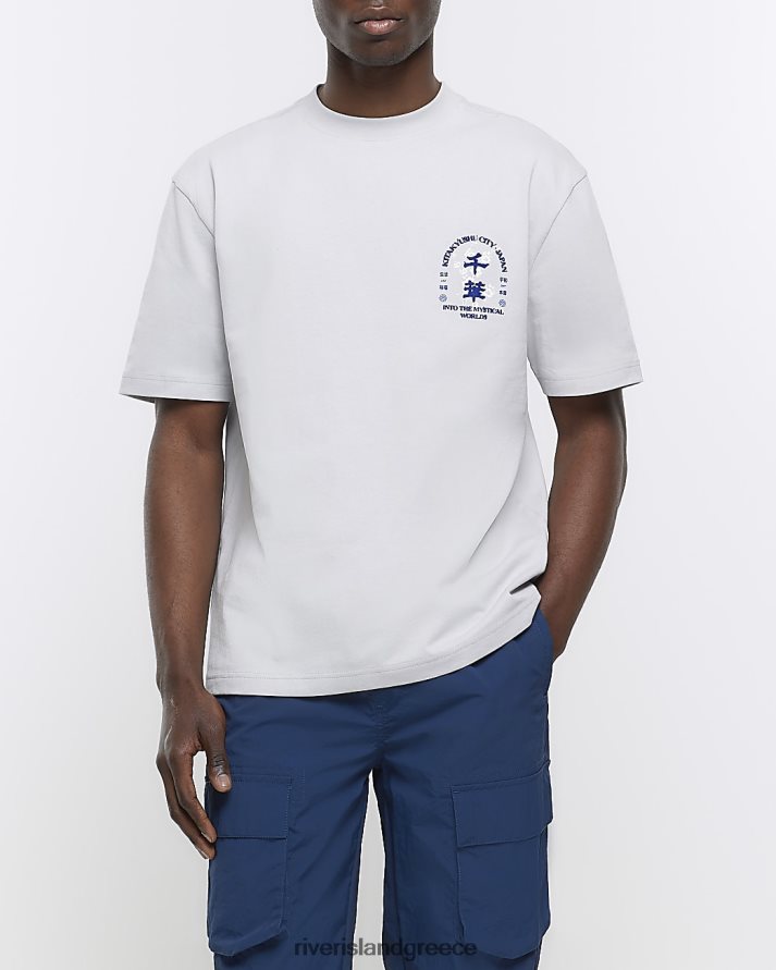 River Island ενδύματα γκρί άνδρες T-shirt με ιαπωνική στάμπα σε κανονική εφαρμογή B6N8X5819