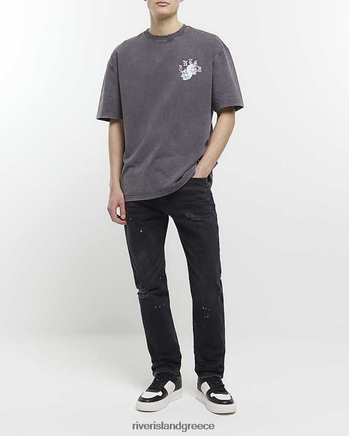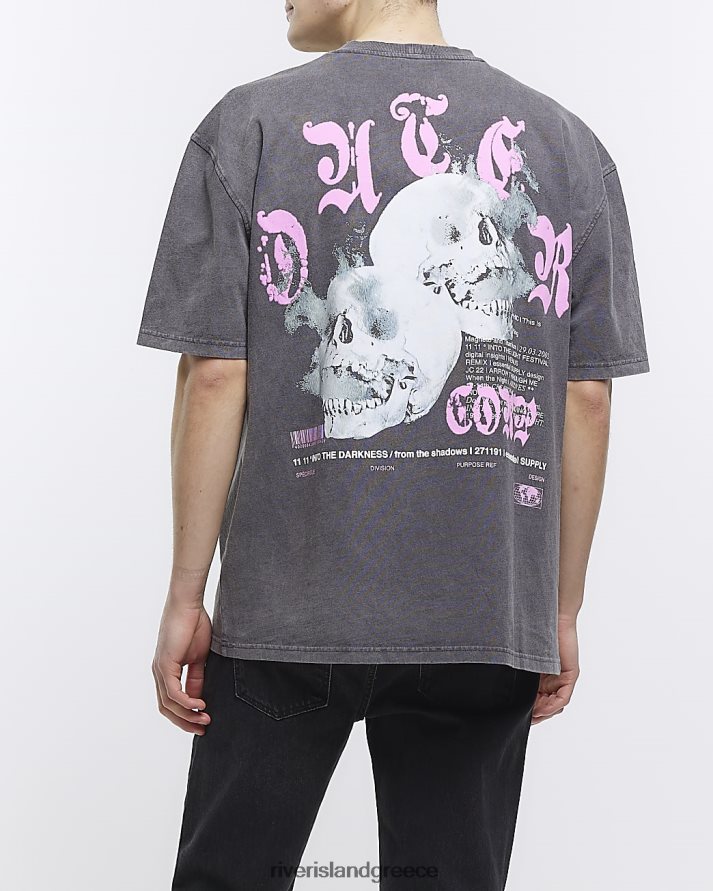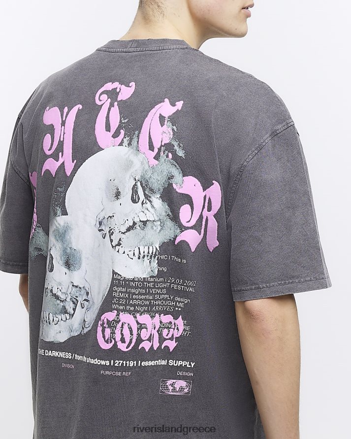 River Island ενδύματα πλυμένο γκρι άνδρες μπλουζάκι με στάμπα σε μεγάλο μέγεθος B6N8X2896